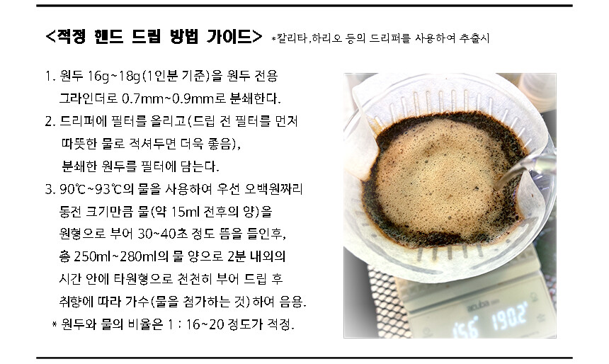 -> 견과류의 고소함, 시트러스, 워시드 커피의 클린함&산미와 더불어